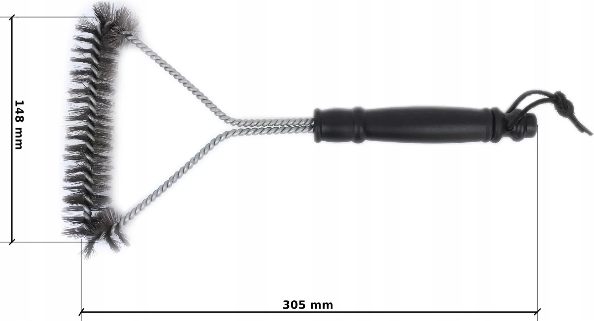 Der ergonomisch geformte Kunststoffgriff liegt sicher in der Hand und ermöglicht kontrolliertes Arbeiten ohne Abrutschen. Durch die praktische Aufhängeschlaufe kann die Bürste nach dem Gebrauch platzsparend verstaut werden – ideal für den regelmäßigen Einsatz während der Grillsaison.